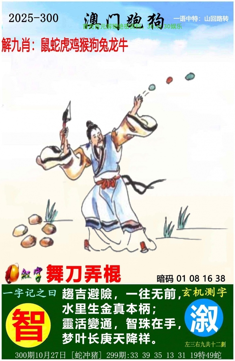 | 300期:九肖 | 兔虎鸡马猪猴牛狗蛇 | 开:虎40 |